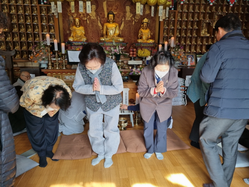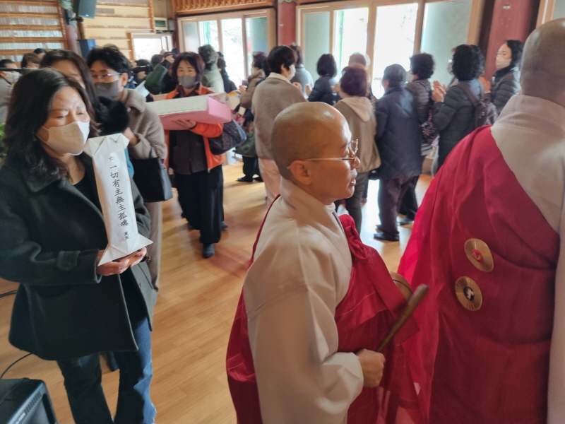 장경사 정초 합동 천도재 2024.2.27 페이지 정보 작성자 법성심보살님 작성일24-02-29 15:31 조회1,186회 댓글0건 본문 장경사에서는 지난 2024. 2.27조상님 정초 합동 천도재를 봉행하였습니다선망 조상님과 유주 무주 영가님들의왕생극락과 부처님의 자비광명이온세상에 두루두루비추어 불자님들의 가정 가정마다 갑진년 올 한해도모든 소원 이루어 지시기를 발원드립니다. 댓글목록 등록된 댓글이 없습니다. 이전글 다음글 목록