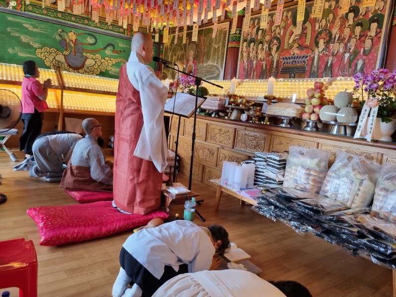 신도들은 절을 올리며기도가 이어졌다